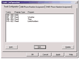 用戶可以為項(xiàng)目中的任何一個(gè)應(yīng)用程序分配一個(gè)中繼資源或者多個(gè)中繼資源。也可以根據(jù)從那些呼叫線路受到的ANI或者DNIS信息來(lái)決定應(yīng)該為程序分配哪種資源。