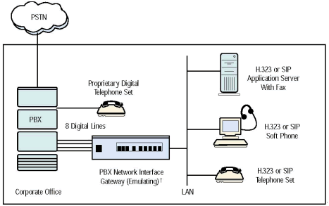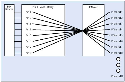 PBX-IP 媒體網(wǎng)關(guān)可以把IP電話(huà)連接到傳統(tǒng)PBX上, 給PBX集成了網(wǎng)絡(luò)應(yīng)用, 擴(kuò)展了PBX, 集成了企業(yè)局域網(wǎng)或廣域網(wǎng)語(yǔ)音,